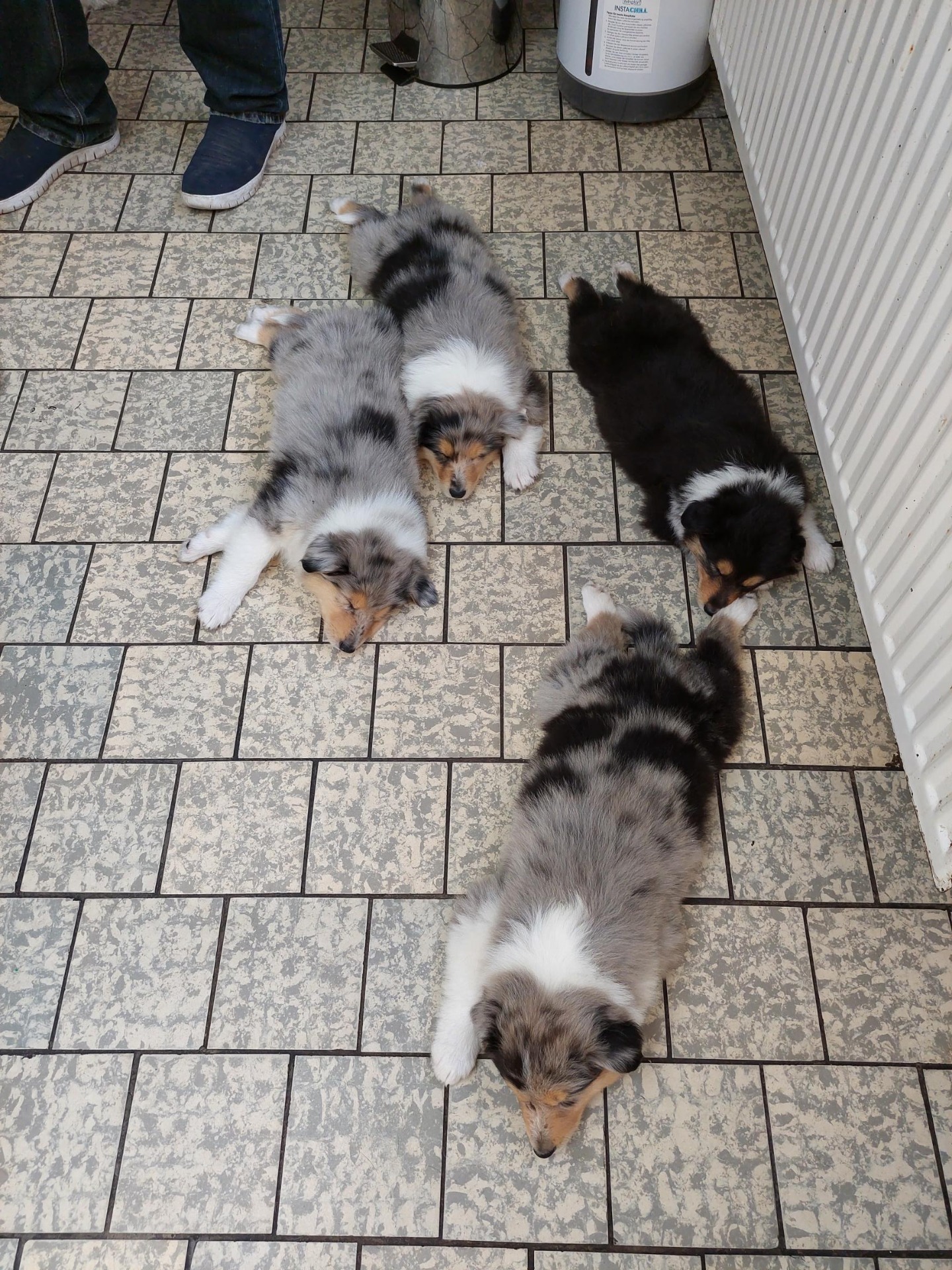 6. 8. 2023 se nám narodila první štěňátka naší chovatelské stanice. Porod začal brzy nad ránem v 1:39. Ve 2:16 už s námi bylo první modré štěňátko a byl to kluk 256 g. Ty rošťáci sourozenci poslali na svět jako prvního toho nejmenšího z nich a zadečkem napřed. Pak už to šlo jako po másle, jako kdyby Nellinka už někdy rodila. Ve 2:53 přišel na svět druhý modrý kluk 304 g a také zadečkem napřed. Překvapivě se v 2:56 jako třetí narodil modrý kluk 295 g, ale hlavičkou napřed a doslova vypadl, asi spěchal za bráškou, kterému nestihl něco říct. A jako poslední překvapení se ve 3:09 narodil černý kluk, největší ze všech s váhou 314g a bylo po všem. Doma nám tam leželi 4 krásní kluci, kteří se hlásili o své slovo v životě. A tak doma máme Artuta, Alberta, Alfréda a Artuše. Kluci jsou čilí a krásně přibírají a těší se na své nové milující páníčky.